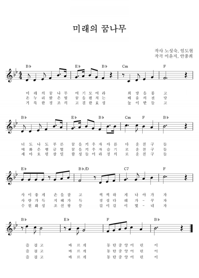 푸른 꿈을 간직하고 항상 노력하며 건강하게 자라